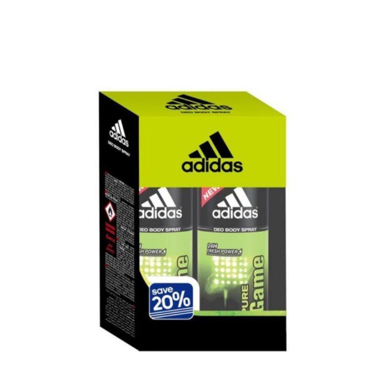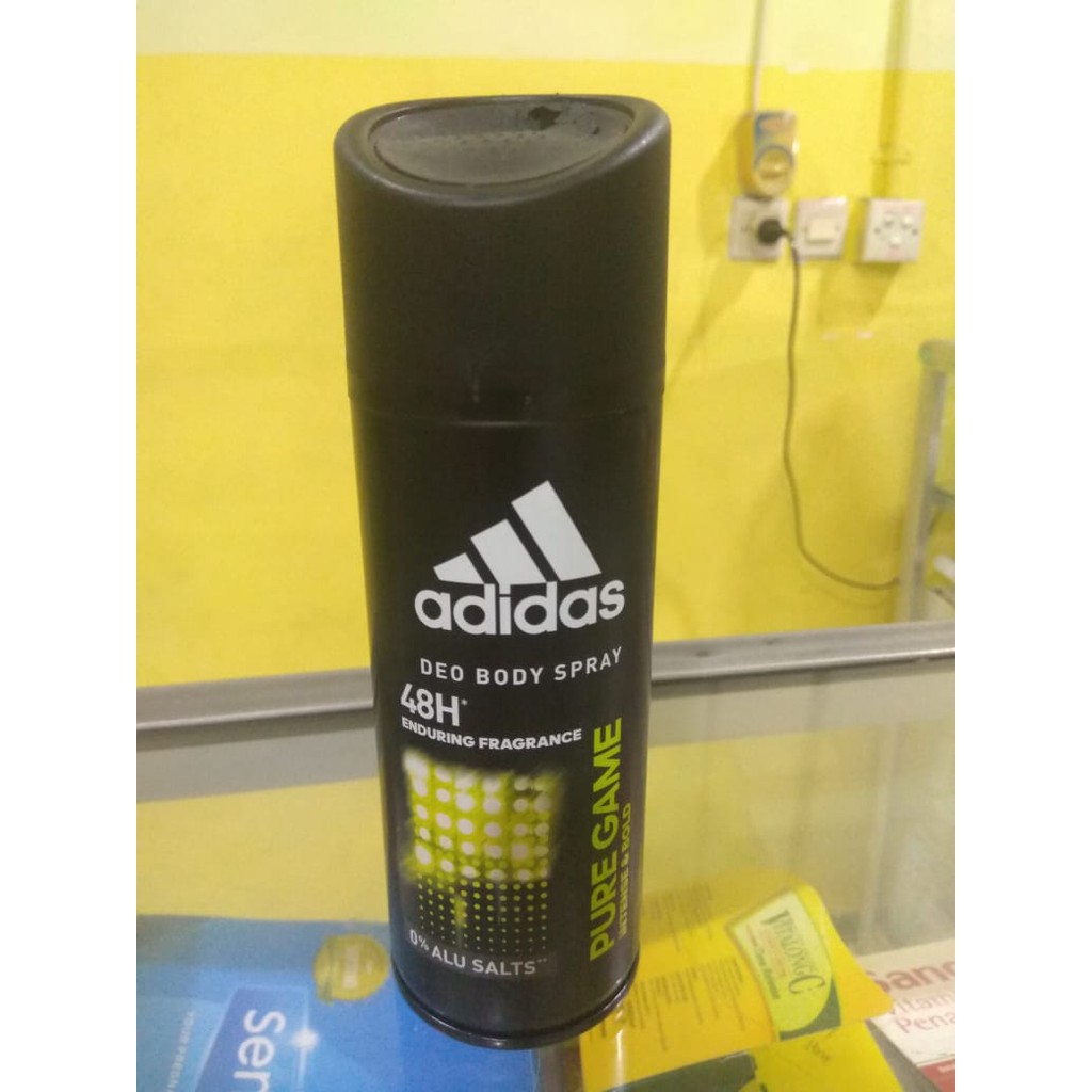 Adidas pure game lot of 2 deodorant body spray 24h fresh power 2 x 5 oz for men. Pure game by adidas is a woody spicy fragrance for men pure game was launched in 2010. With the elegant and modern accords of guaiac wood cypress and patchouli pure game body spray delivers the relaxing yet empowering feeling of confidence and drive as well as long lasting 24 hour feeling of freshness after each application. Adidas ice dive deo body spray for men 48h protection 150ml 4 7 out of 5 stars 224.