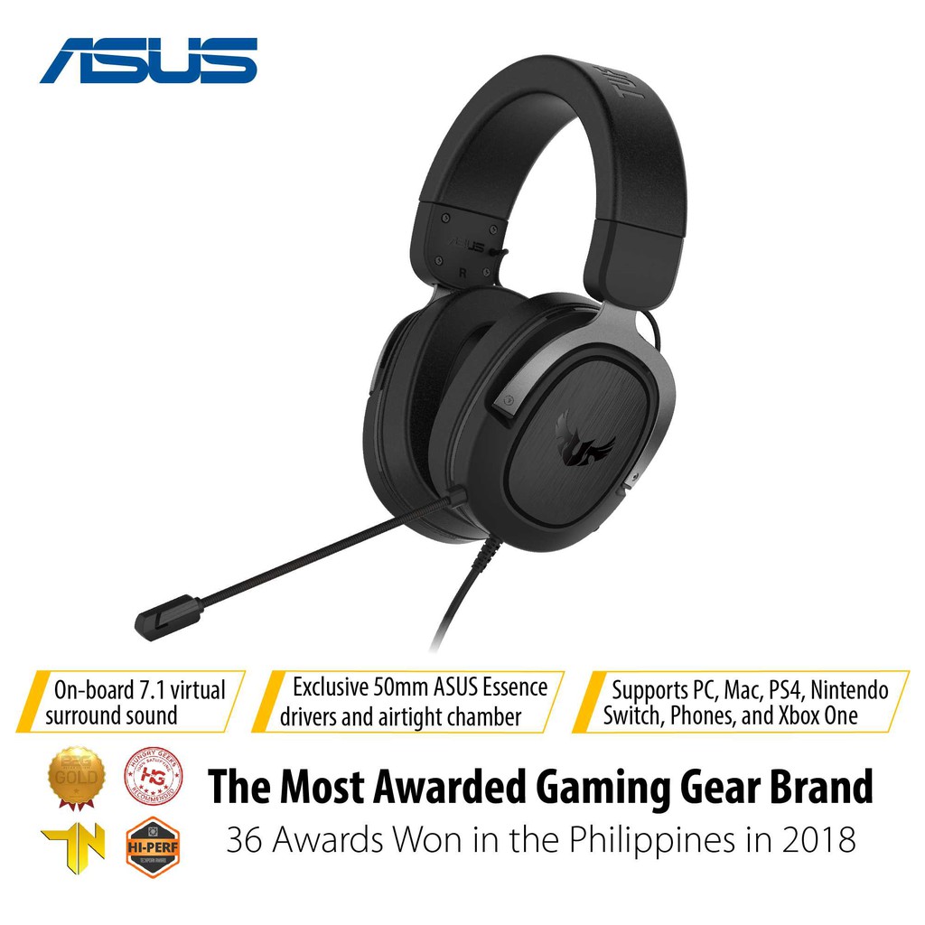 The asus tuf gaming h3 headset shines with a cozy fit and audio that sounds great for gaming without the need to tweak. Virtual 7 1 surround sound supported by windows sonic. At a price tag of rs 3440 only the tuf gaming h3 headset giving gamers the option of getting some top quality craftsmanship incredibly balanced game audio reproduction comfortable metal headband with wide earcups in lined a fast cooling ear cushions that has been designed to stay cool makes playing games for extended. Tuf gaming h3 gaming headset for pc ps4 xbox one and nintendo switch featuring 7 1 surround sound deep bass lightweight design fast cooling ear cushions 50 mm asus essence drivers and exclusive airtight chamber technology deliver an immersive audio experience.