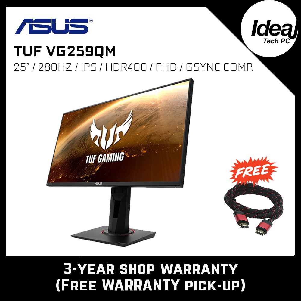 Asus Tuf Vg259qm Gaming Monitor Hdr Fhd Ips 144hz Overclockable 280hz 1ms G Sync 3y Lazada Singapore