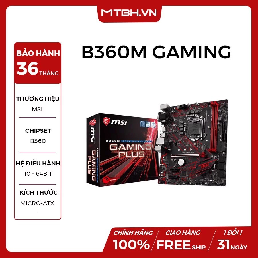 Deskripsi msi b360m gaming plus lga1151 b360 ddr4 usb3 1 sata3 supports 8th gen intel core pentium gold and celeron processors for socket lga 1151. Built for hardcore gamers and pc enthusiasts this motherboard is designed to fully utilize the intel coffee lake 6 core processors ready to deliver world class performance when gaming. Personalize your pc with 16 8 million colors 10 effects controlled in one click with the mystic light app or a mobile device. Unlock your system s full potential with safeslot core and fan xpert 2.