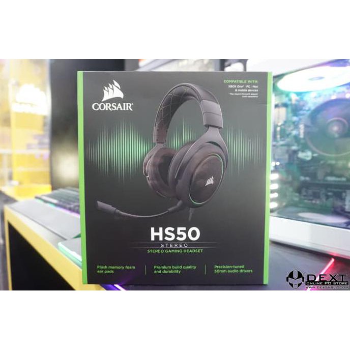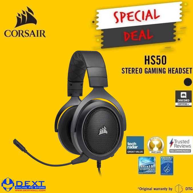 Jual corsair hs50 stereo gaming headset carbon dengan harga rp829 000 dari toko online dextmall jakarta pusat. Jual beli online aman dan nyaman hanya di tokopedia. The corsair hs50 pro stereo gaming headset delivers both comfort and quality with memory foam ear pads and custom tuned 50mm neodymium audio drivers built to last thanks to its lightweight and durable construction. A detachable noise cancelling unidirectional microphone helps your voice come through loud and clear and a 3 5mm audio connector.