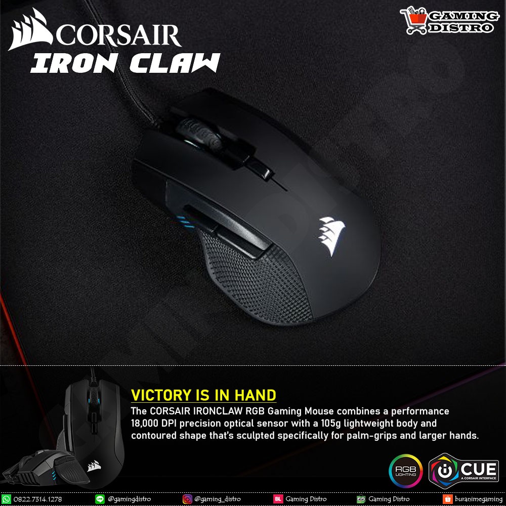 Deskripsi corsair ironclaw rgb fps moba gaming mouse. The ironclaw rgb gaming mouse delivers ultra accurate tracking and first rate gaming performance. Compatible with corsair icue.