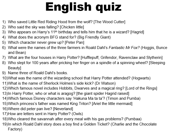 English Quiz For Class 5