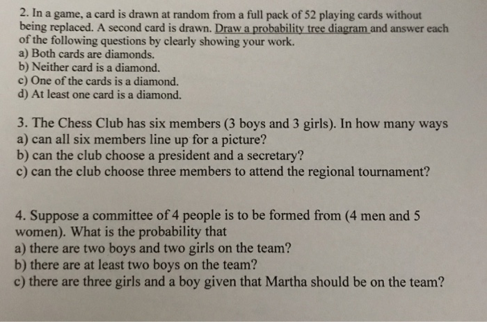 Solved 2 In A Game A Card Is Drawn At Random From A Ful Chegg Com
