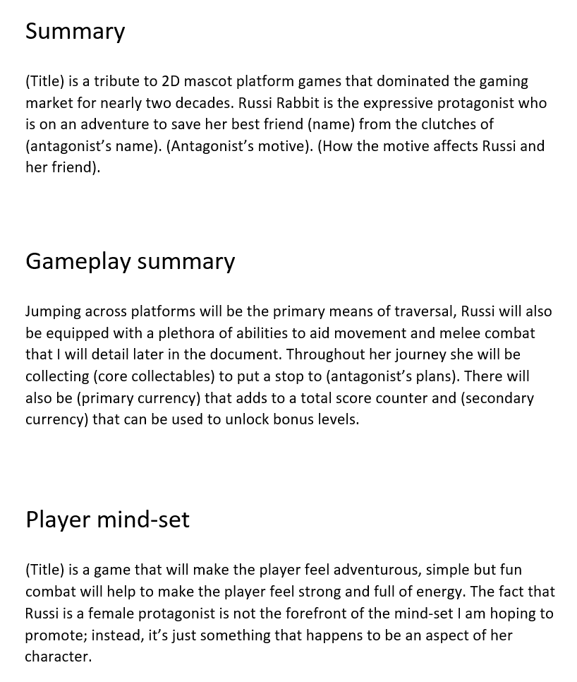 Game Design Doc Template