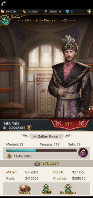 It s a new empire simulation rpg mobile game. The player will get a real life experience like a sultan. For achieving vip level. Every time you make an in game purchase you accumulate a certain number of vip points and your vip level increases upon earning a certain number of these points.