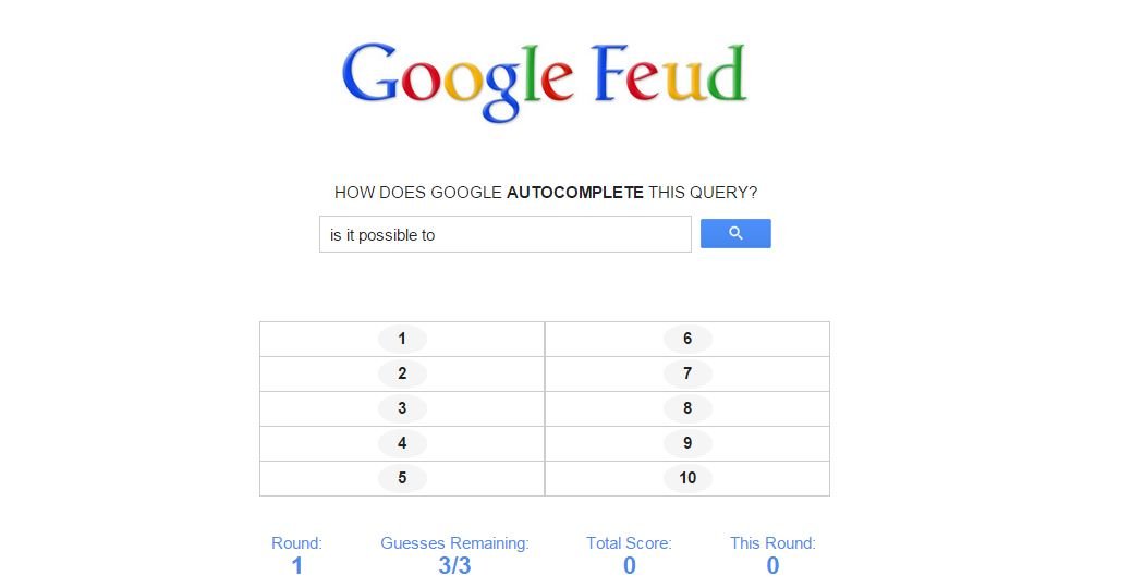Of course it doesn t always work. A simple game of higher or lower. But the more you play with it the more it will learn. Inspired by family feud a cult us television show this version uses google s autocomplete suggestions instead of audience surveys as the basis for correct answers.