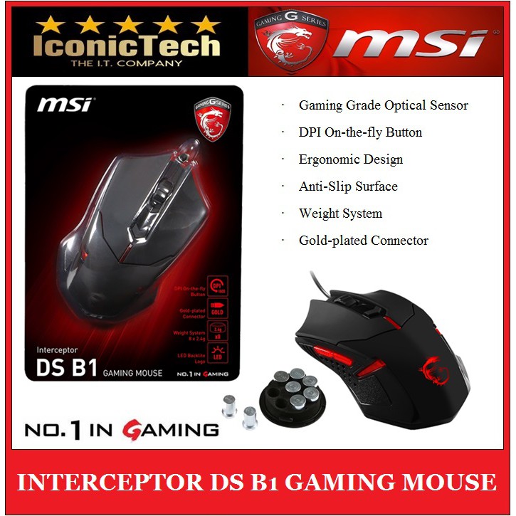 Gaming grade optical sensor. Msi designs and creates mainboard aio graphics card notebook netbook tablet pc consumer electronics communication barebone. Ds b1 ergonomic design to enhance the comfort of the user while using mouse and to help prevent serious injury from long term daily computer use. Ulas gaming mouse msi interceptor ds b1 january 23 2017 ulasan off keyboard mouse ulasan sebelum nya kita mau kasih tau dulu nih mouse ini berada di harga yang cukup relatif murah banget kok dengan apa yang dikasih sama mouse ini.