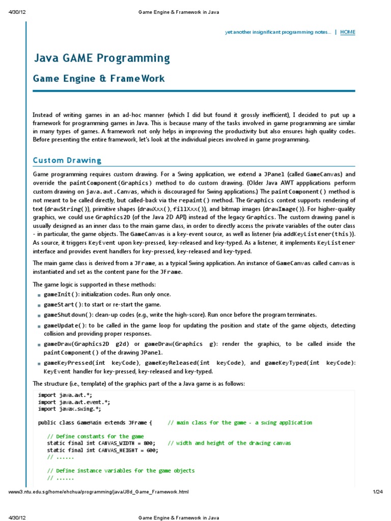 Game Engine Framework In Java Java Programming Language Computer Programming