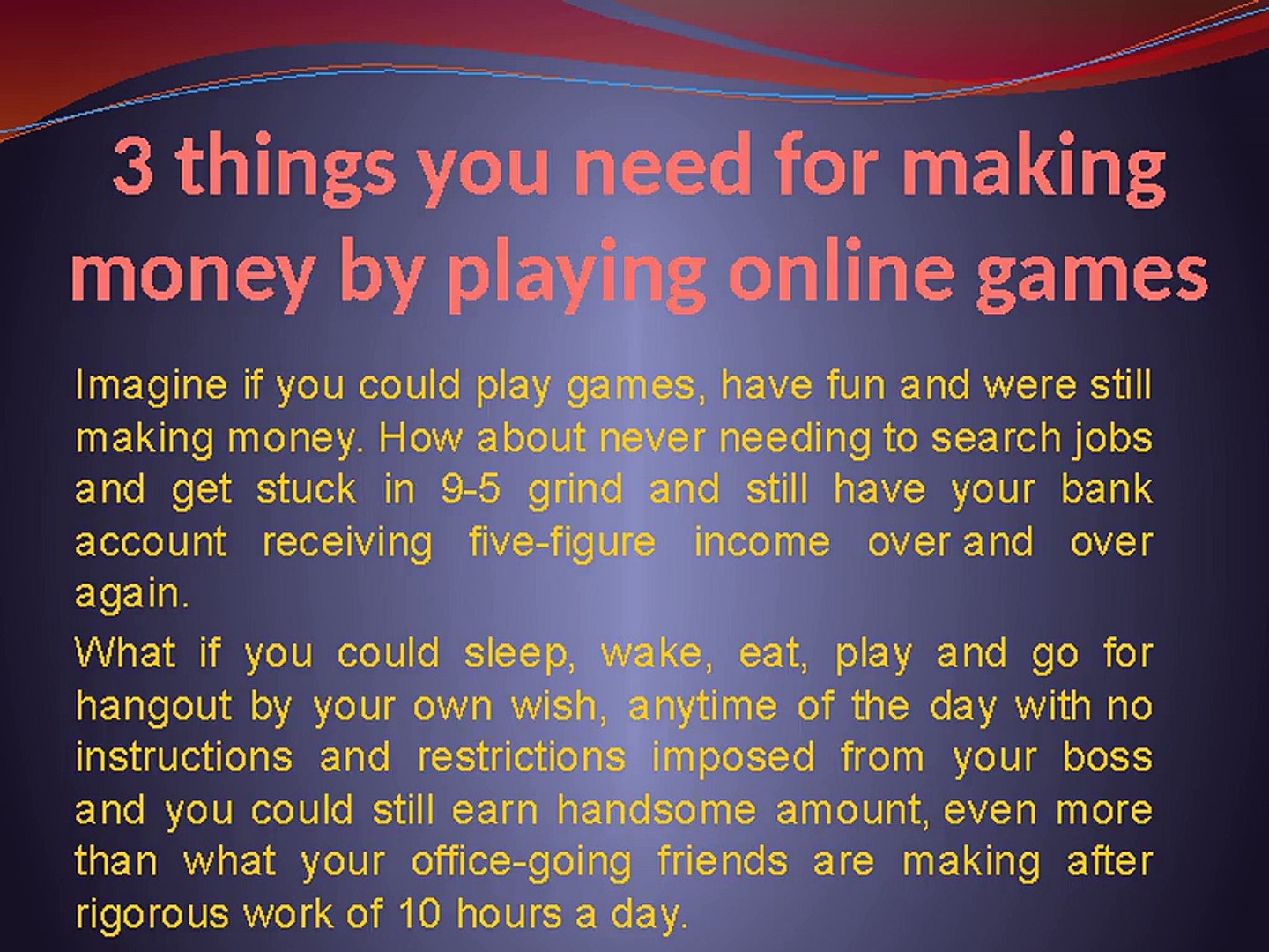 If your channel attracts several subscribers gaming companies will ask you to play for free and make commentaries. Swagbucks allows users to earn money by searching the web watching videos taking paid surveys playing games or shopping online. Here you would be presented with the usual word and arcade games. Fighting games first person shooter games and card games are popular among e sports gamers.