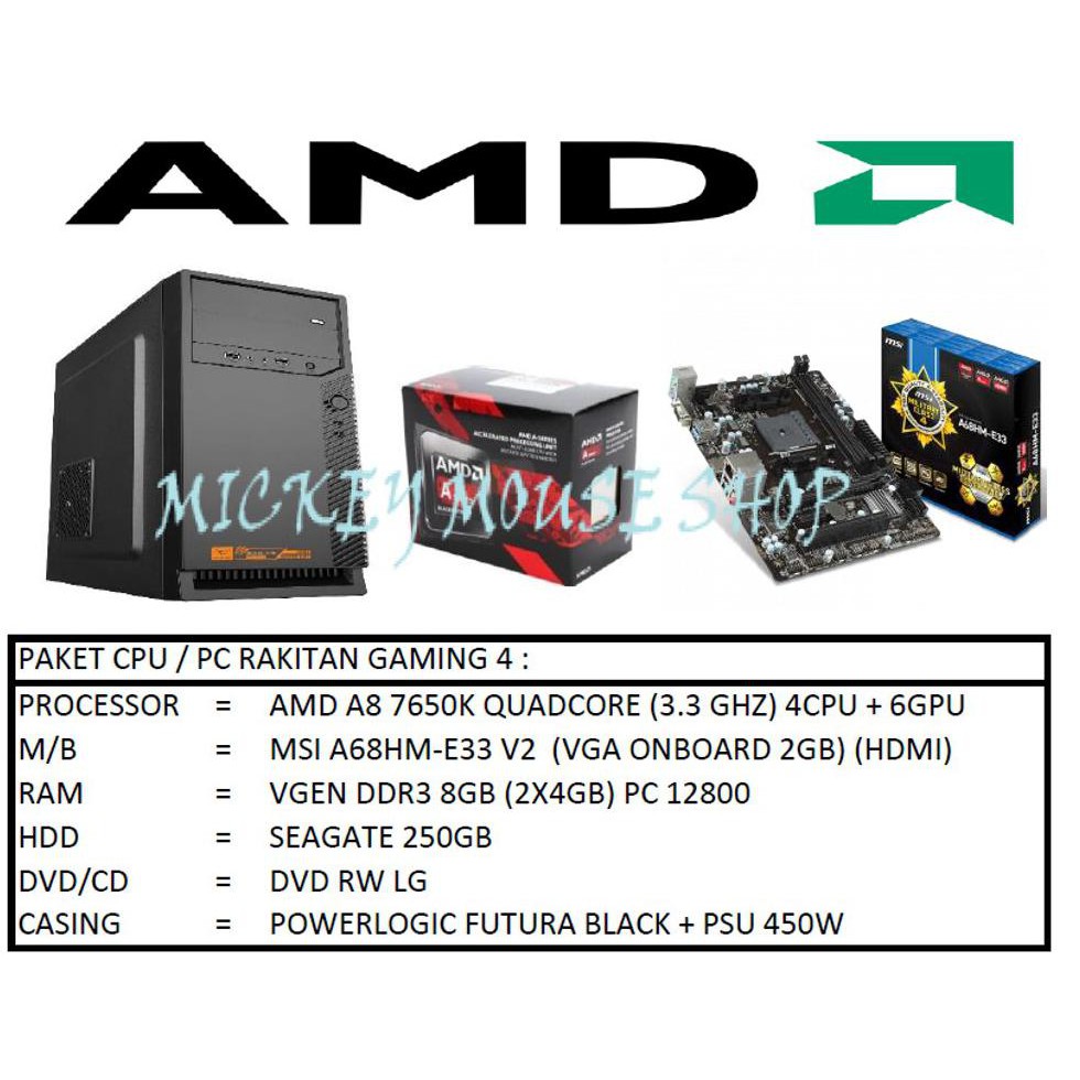 Paket Cpu Rakitan Pc Gaming 4 Amd A8 7650k Ram 8gb Hdd 250gb Radeon R7 Series Bonus Games Siap Pakai Shopee Indonesia
