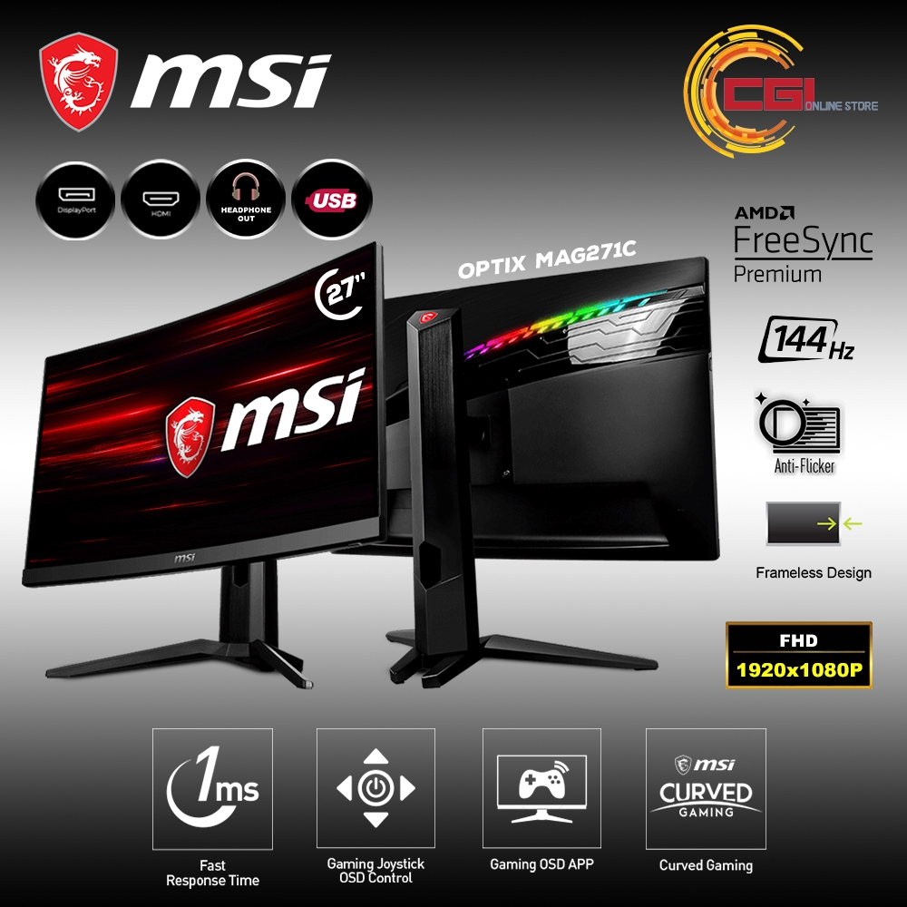 Monitor led gaming msi optix g241 ips 24 1920x1080 144 hz hdmirp3 349 900. Equipped with g sync or freesync and 4k wide color gamut msi gaming monitor ensures you the smoothest gameplay without tearing stuttering and flickering. Msi optix g27c2 27 inch 1ms 144hz full hd curved gaming monitor the curved advantage this 27 inch 1800r curved msi gaming monitor with full hd 1920 x 1080p 16. These type of games require very fast and precise movements which an ultra high refresh rate and fast response.