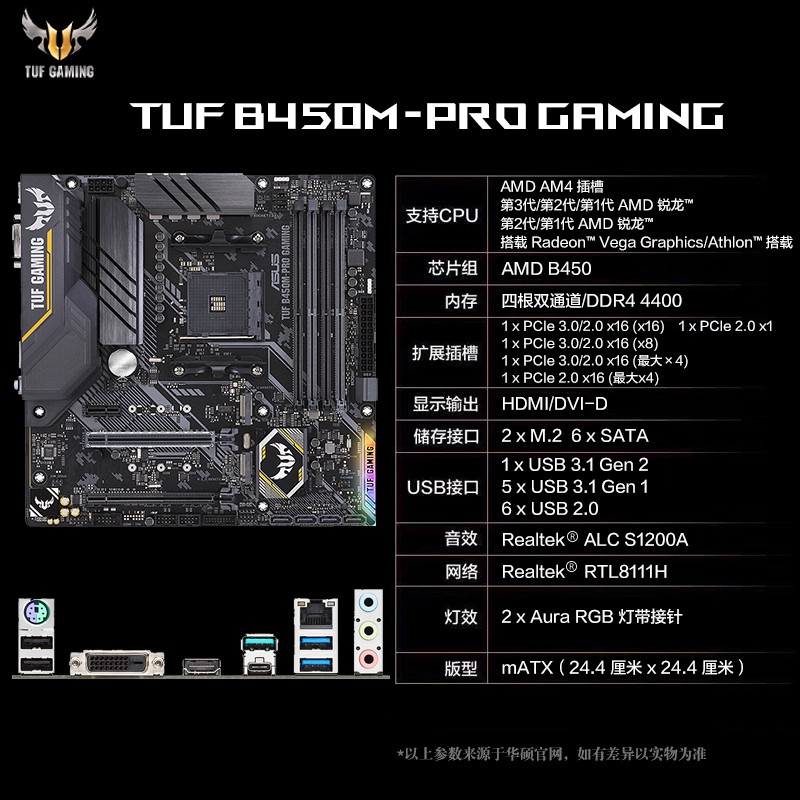 Asus Tuf B450m Pro Gaming For Amd Ryzen 3 5 7 9 1 3th Dvi Hdmi M 2 2 Usb3 1 3 2 128gb Socket Am4 B450 Micro Atx Pc Motherboard Motherboards Aliexpress
